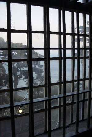 Golden Gate Bridge as seen from Alcatraz Prison.